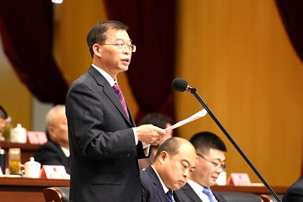 在热烈的掌声中,区人民政府区长时新向大会作《政府工作报告》。报告共分四部分:一、2025年工作和“十四五”时期发展回顾;二、“十五五”时期主要目标任务;三、2026年工作安排;四、加强政府自身建设。